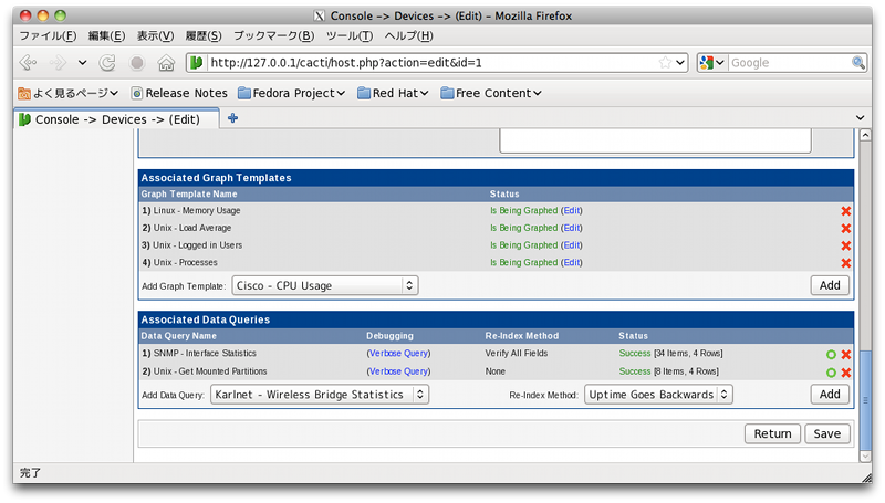 $ snmpwalk -v1 -c public localhostと同じように設定する 同じ画面の最後で、SNMP Interface Statistics を追加して SAVE