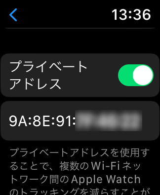 - Apple Watch に搭載されている Wifi チップに焼き込まれた MAC アドレスを使うのではなく、Wifi アクセスポイントごとに MAC アドレスをランダム生成しているらしい