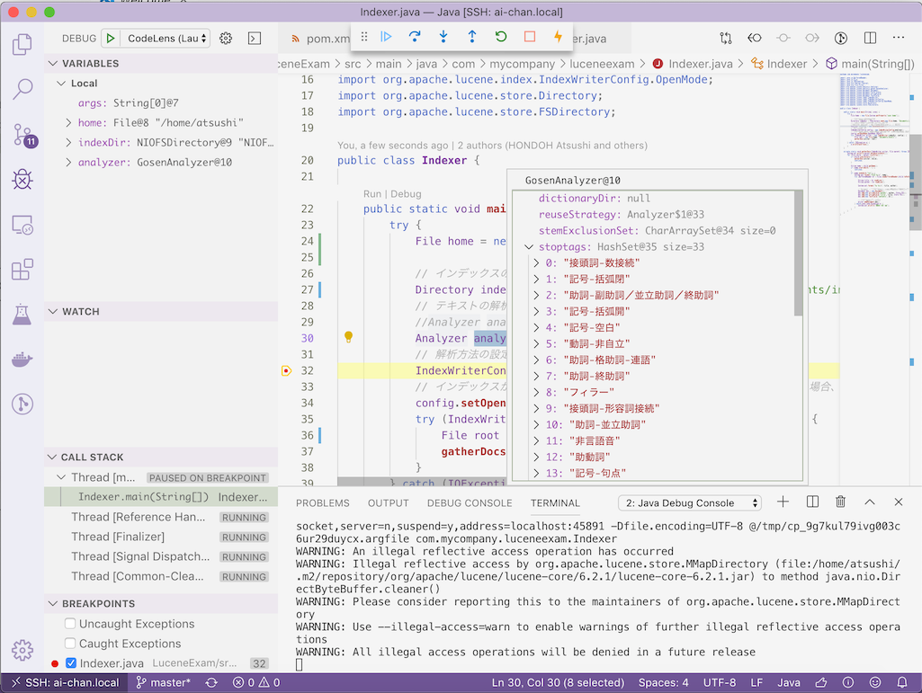 - あとは普通のデバック実行、オブジェクトの中身を見ることもできる