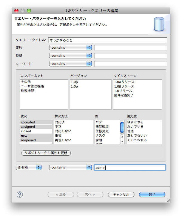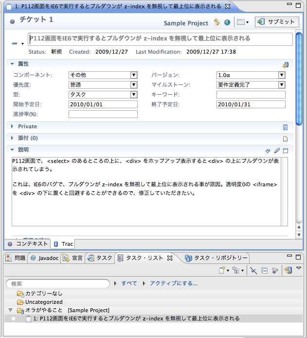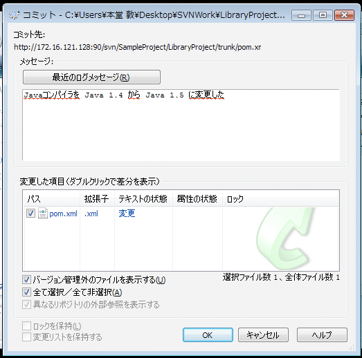 5. Trac (Subversion) 側の変更を取り込むには、更新(Update)する