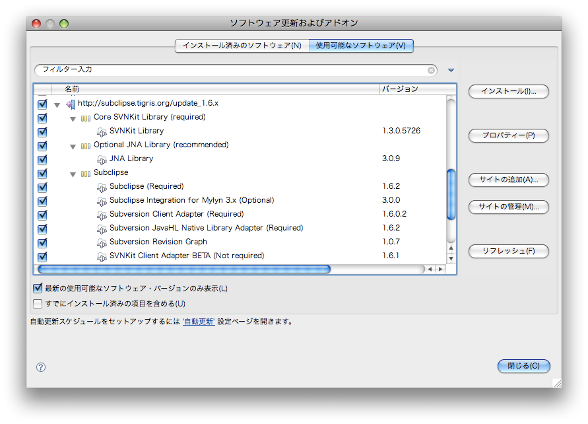 1. http://subclipse.tigris.org/ で最新版の Eclipse Update site URL を調べる