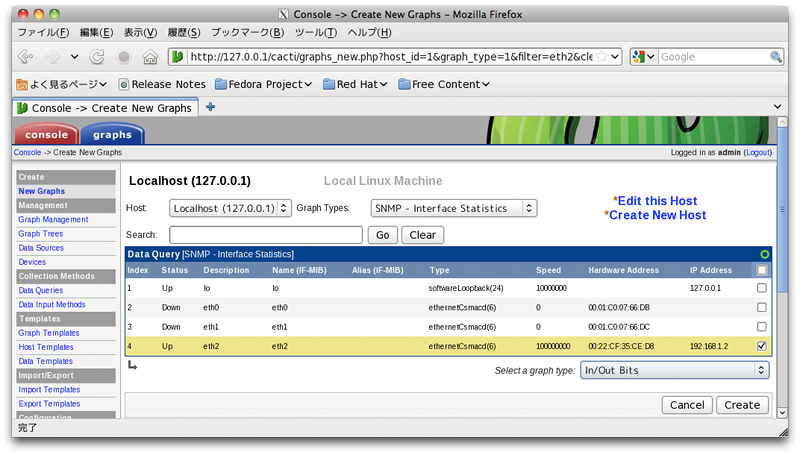 $ snmpwalk -v1 -c public localhostと同じように設定する 同じ画面の最後で、SNMP Interface Statistics を追加して SAVE