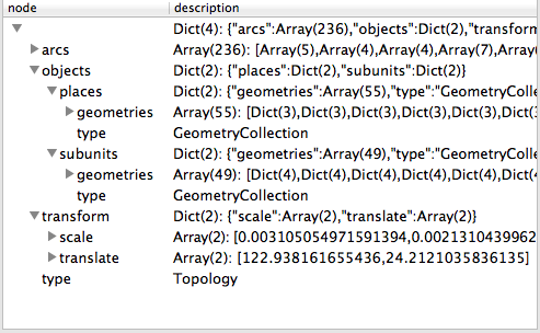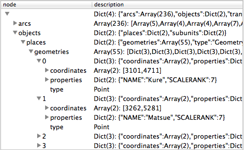 TopoJSON : GeoJSON の改良型。容量が 1/5 くらいになる