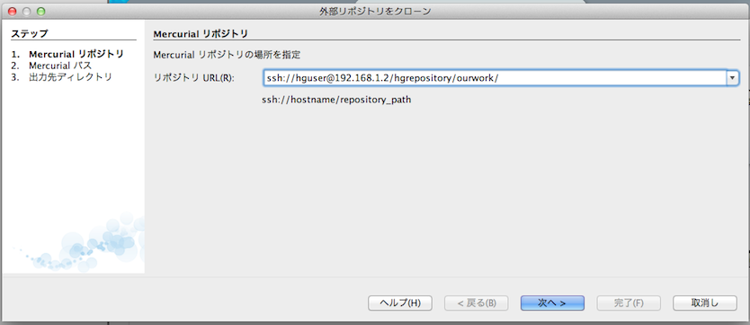 情報 - クローン元: ssh://hguser@192.168.1.2/hgrepository/ourwork/