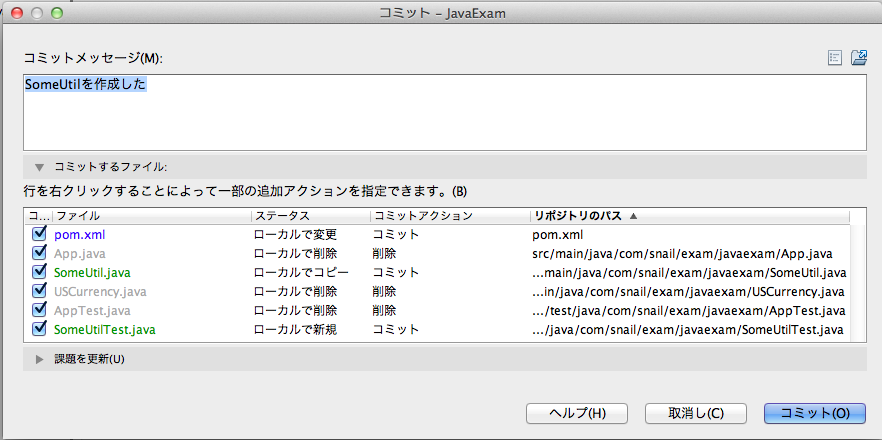 Mercurial プッシュ -------------- 情報 - プッシュ中: ssh://hguser@192.168.1.2/hgrepository/ourwork ... 情報 - プッシュするチェンジセット: changeset : 0:9e3b9f7206c9 author : Atsushi@hondou-atsushi-no-MacBook.local 日付 : Fri Jul 15 00:01:14 JST 2011 summary : Initial Version pushing to ssh://hguser@192.168.1.2/hgrepository/ourwork searching for changes remote: チェンジセットを追加中 remote: マニフェストを追加中 remote: ファイルの変更を追加中 remote: 1 のチェンジセット(8 の変更を 8 ファイルに適用)を追加 情報 - プッシュ先: ssh://hguser@192.168.1.2/hgrepository/ourwork 情報 - 元: JavaExam - /Users/Atsushi/NetBeansProjects/JavaExam 情報: Mercurial プッシュの終了