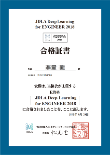 2018-10-12 日本ディープラーニング協会 E(エンジニア)資格 取得 †