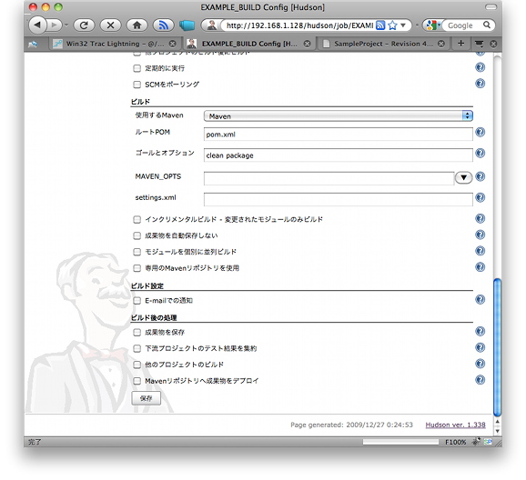 <service> <id>hudson</id> <name>Hudson</name> <description>This service runs Hudson continuous integration system.</description> <env name="HUDSON_HOME" value="%BASE%"/> <!-- if you'd like to run Hudson with a specific version of Java, specify a full path to java.exe. The following value assumes that you have java in your PATH. --> <executable>C:\Program Files\Java\jre6\bin\java.exe</executable> <arguments>-Xrs -Xmx256m -Dhudson.lifecycle=hudson.lifecycle.WindowsServiceLifecycle -jar "%BASE%\hudson.war" --prefix=/hudson --ajp13Port=8009 --ajp13ListenAddress=127.0.0.1 --httpListenAddress=127.0.0.1 --httpPort=8010</arguments> <!-- interactive flag causes the empty black Java window to be displayed. I'm still debugging this. <interactive /> --> <logmode>rotate</logmode> </service>