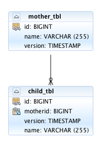 子から親への FK に ON DELETE CASCADE をつけてんだから em.remove(m) で、child_tbl への delete 文を発行しないで欲しい