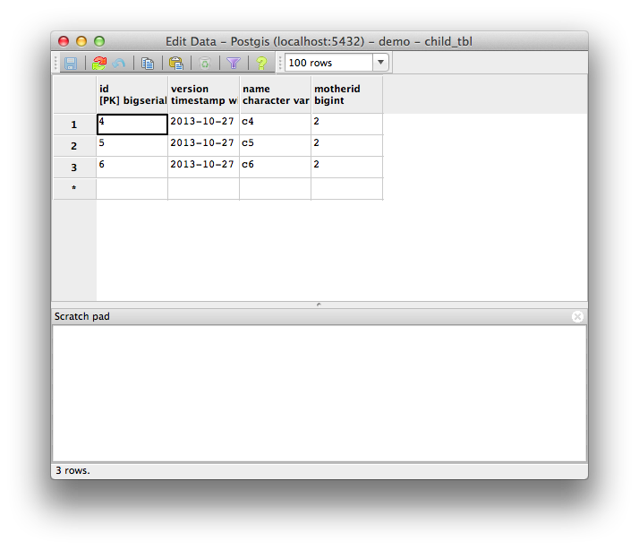INSERT INTO child_tbl (version, name, motherid)